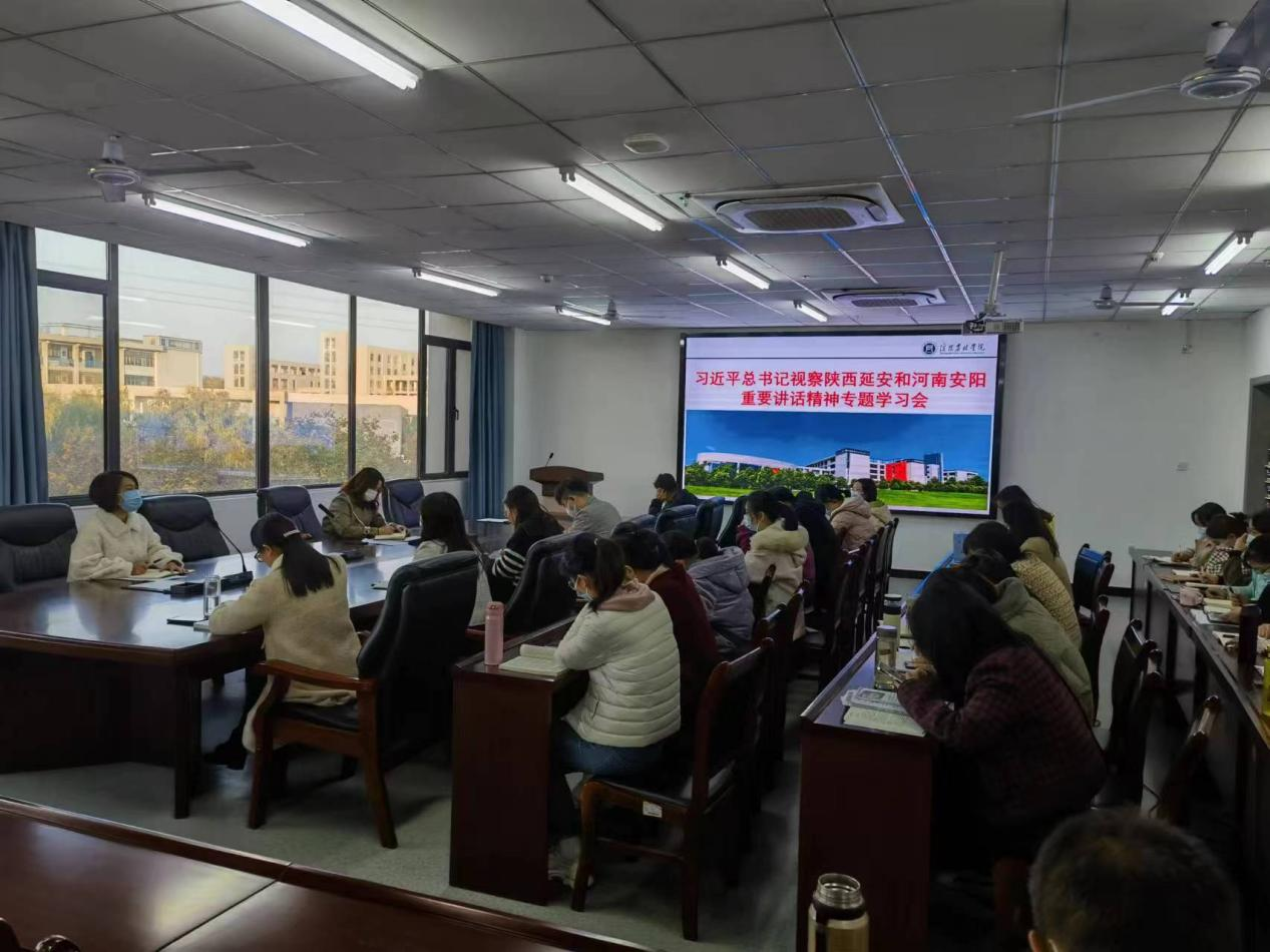 11月15日下午,旅游管理学院党总支在双创中心310会议室开展教职工政治理论学习,学习习近平总书记视察陕西延安和河南安阳重要讲话精神。会议由党总支副书记杜丽主持,全体教职工参会。