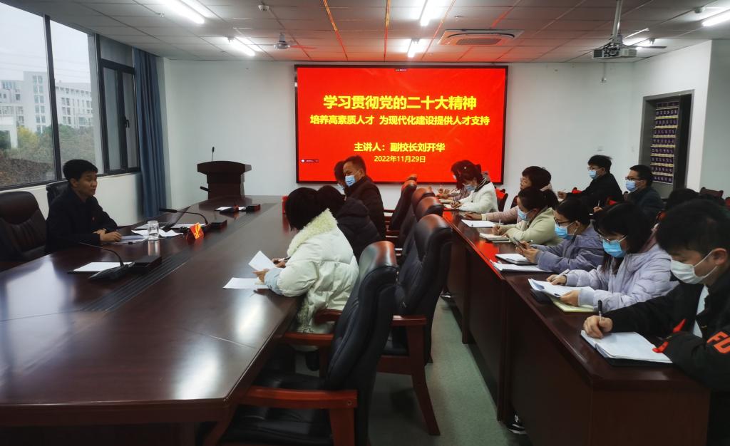 在全党全国各族人民迅速兴起学习宣传贯彻党的二十大精神热潮之际,11月29日下午,副校长刘开华深入教务处、旅游管理学院开展党的二十大精神宣讲报告。教务处、旅游管理学院全体教职工和学生党员、入党积极分子代表通过线上线下相结合的形式收听了报告。