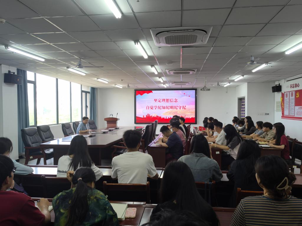 为深入学习贯彻习近平总书记关于党纪学习教育的重要讲话和重要指示精神,引导全院师生党员进一步树牢和增强纪律和规矩意识,将党规党纪内化于心,外化于行,5月19日,旅游学院党总支书记朱长明在双创310会议室以《坚定理想信念 自觉学纪知纪明纪守纪》为题,为师生党员讲授党纪学习教育专题党课。