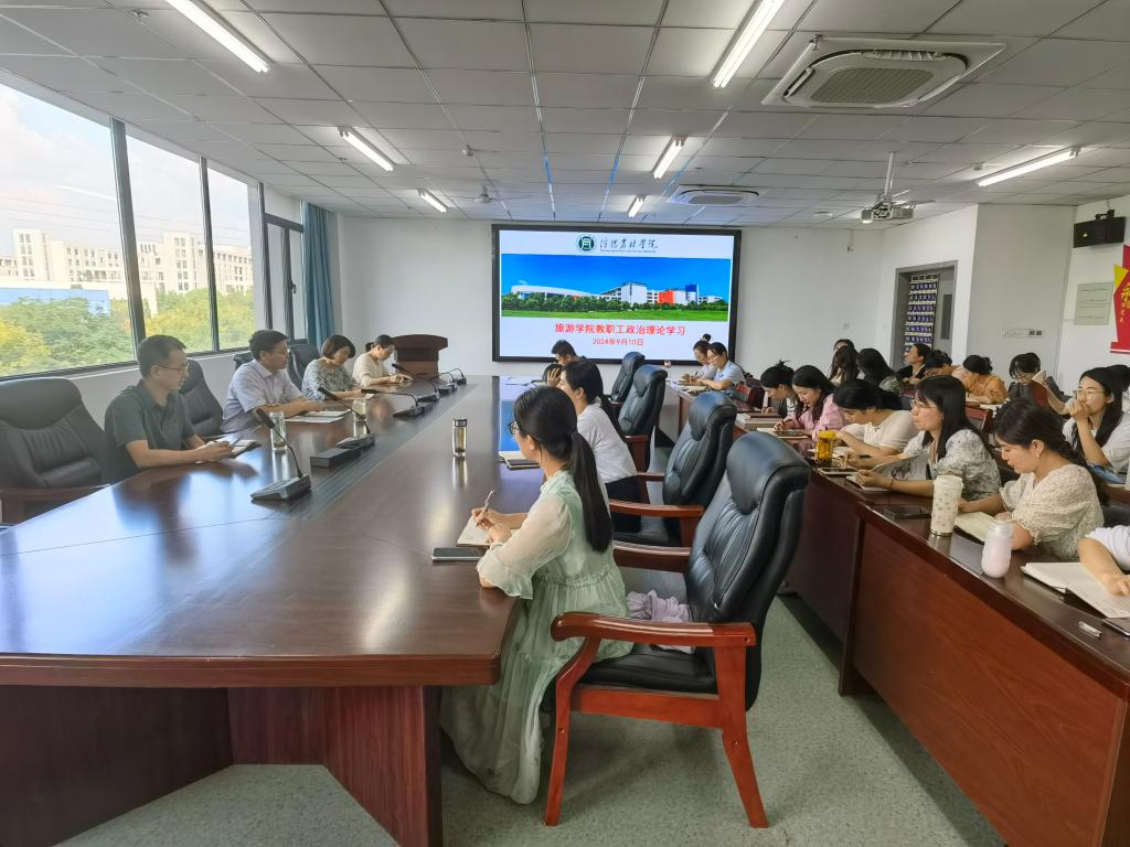 9月10日下午,旅游学院在双创中心310会议室召开教职工政治理论学习会,会议由党总支书记朱长明主持,全体教职工参会。