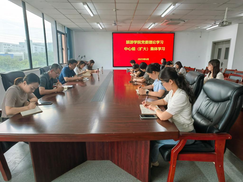 6月25日,旅游学院党委在双创中心310会议室召开理论学习中心组(扩大)集体学习会。会议由党委书记朱长明主持,学院班子成员、科级干部参加学习会。
