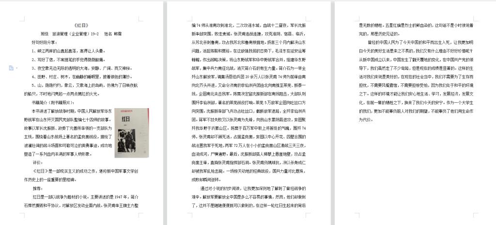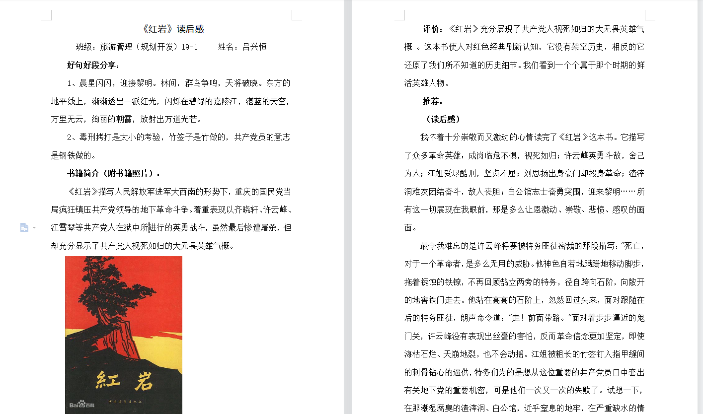 旅游管理专业学生党支部开展阅读红色经典,传承红色基因读后感大赛