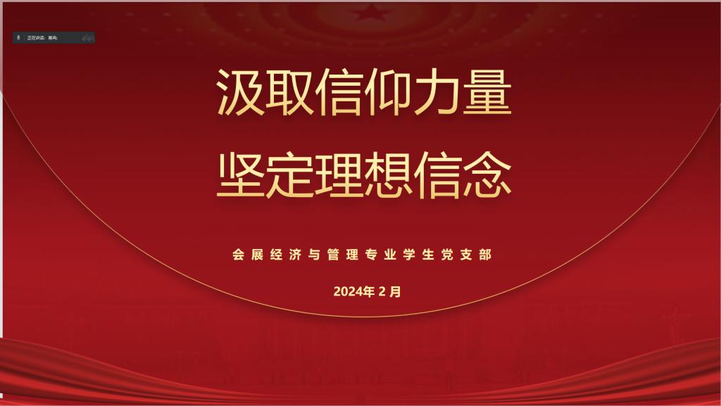 2月29日,会展经济与管理专业学生党支部开展了“汲取信仰力量,坚定理想信念”2月主题党日活动。会议由党支部书记易冉主持。
