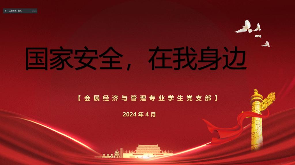4月25日,会展经济与管理专业学生党支部开展“国家安全,在我身边”4月主题党日活动。会议由支部书记易冉主持,支部全体党员参加了本次会议。