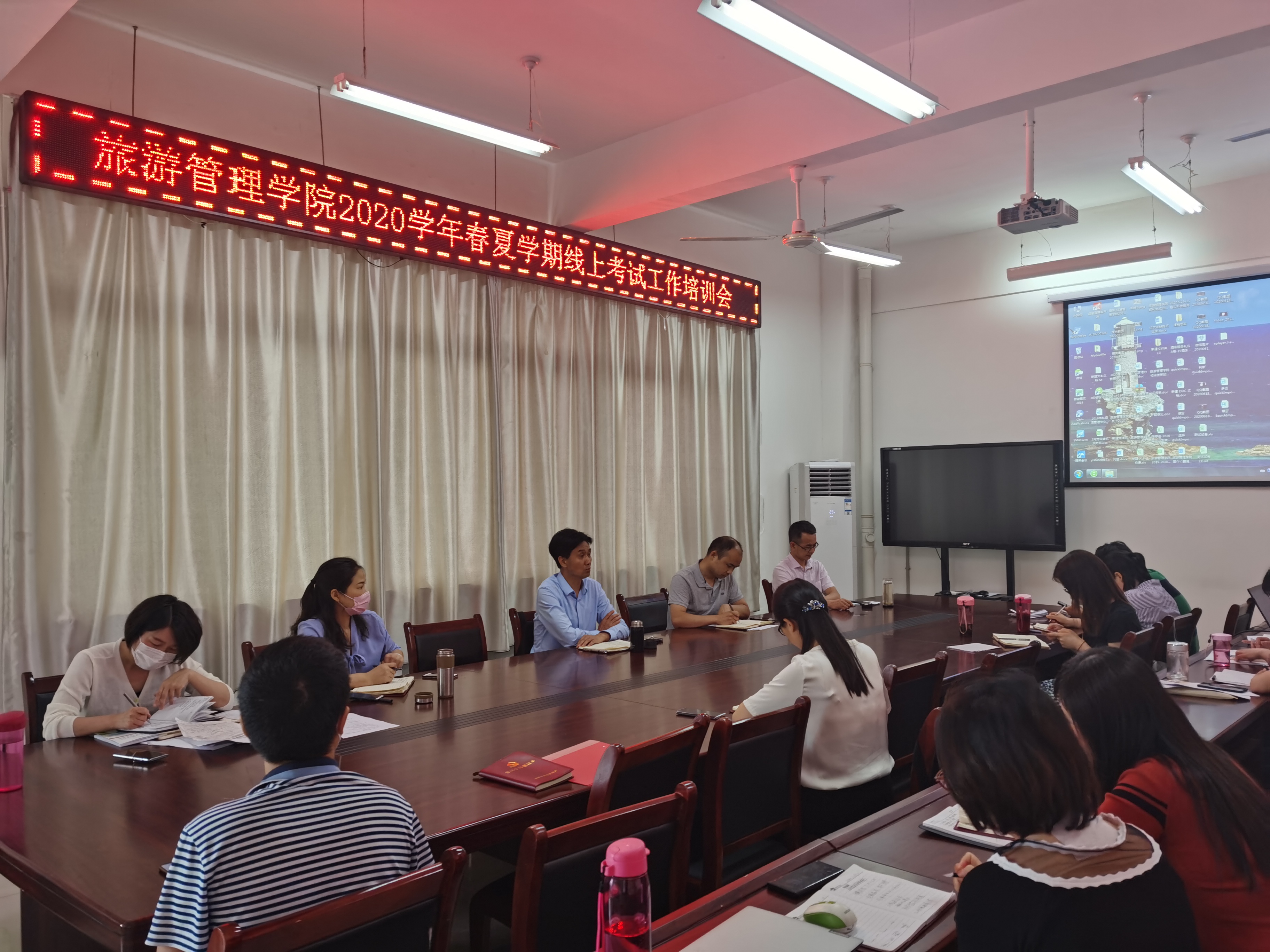 为确保2020年春夏学期期末线上考试顺利开展,加强考风学风建设,我院于6月18日下午在1C502会议室召开2020学年春夏学期线上考试工作培训会,院长刘开华、党总支书记陈建国及各教研室老师参加了此次培训会,会议由教学副院长陈婷主持。