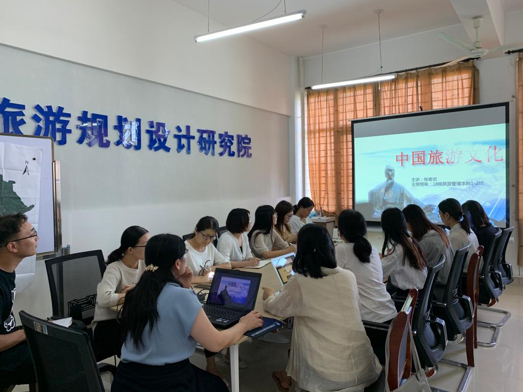 与会教师从课程性质分析、学情分析、授课计划、教法分析、对该课程的看法、对课程思政的理解、线上线下课堂结合等方面就本学期承担的中国旅游文化、导游业务、旅游政策与法规、化妆技巧与训练、民航地面服务与管理、铁路客运英语、中国旅游地理等课程进行了交流,内容准备充分、教学设计巧妙,展示了丰富的理论知识储备和扎实的教学功底。