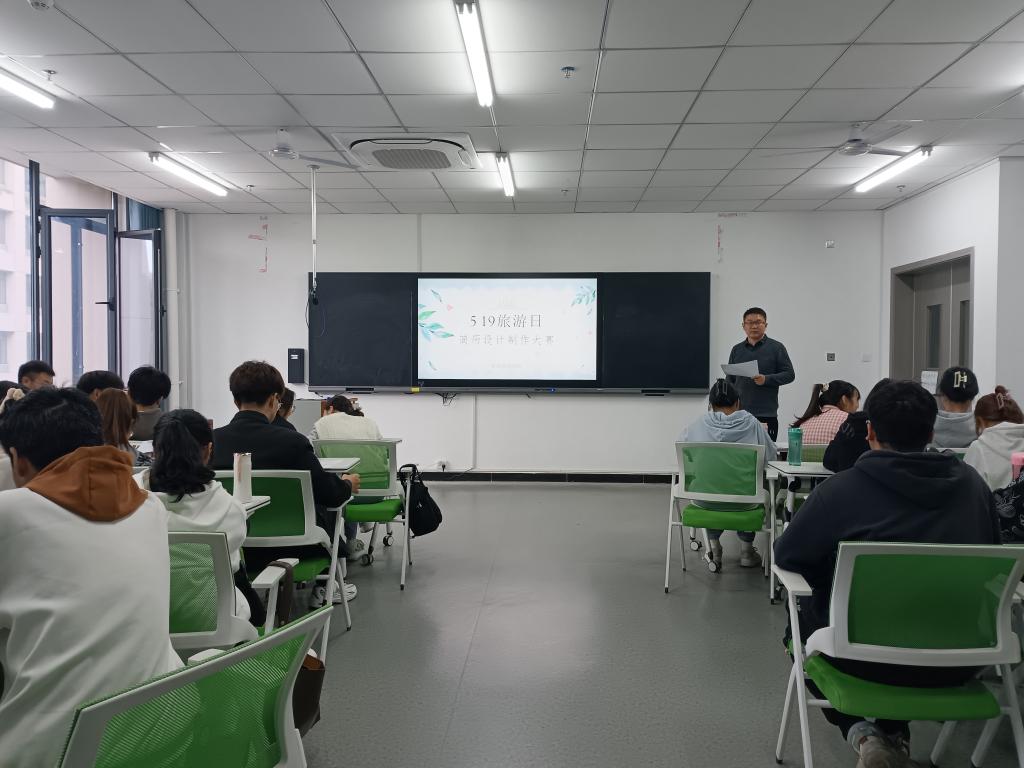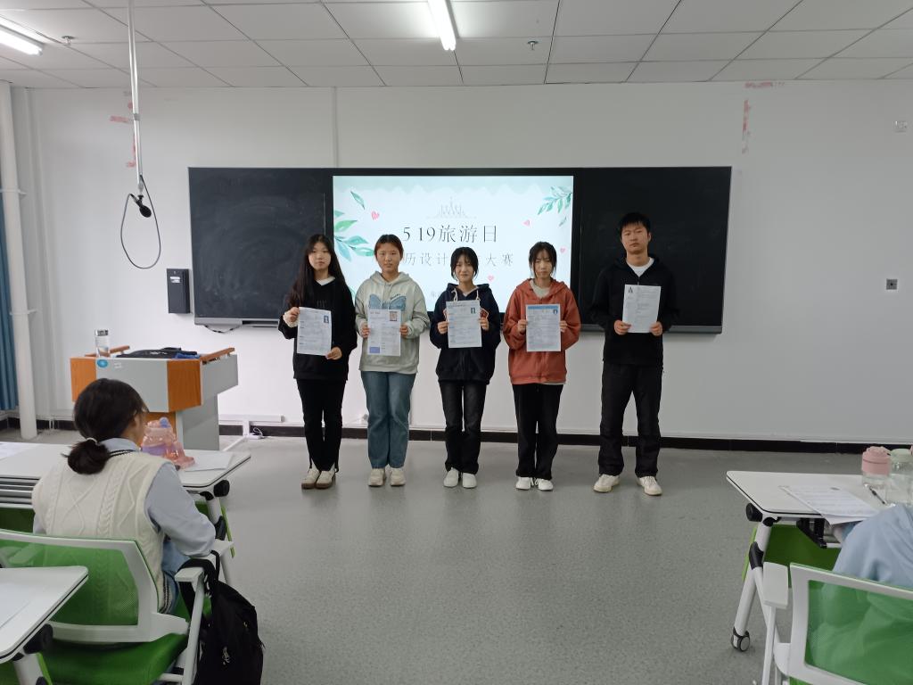 为丰富"5·19"旅游文化节内容,加大对酒店专业人才的教育和培养力度,推动酒店专业实践教学能力提升,提高大学生的创新思维和就业能力,旅游管理学院酒店管理教研室于2023年5月20日下午在双创中心307举办了以“破简而出,设想未来”为主题的简历设计制作大赛,此次大赛由罗志涛老师指导,酒店教研室部分教师担任评委指导,本次活动共有10组参赛队伍。