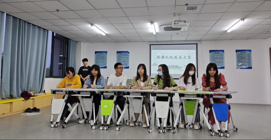 为进一步提升学生的旅游专业素养,展现旅游职业魅力,以赛促学、以赛促教,同时迎接第十三个中国旅游日,2023年5月11日,旅游管理学院在双创中心327开展了“精彩旅途、‘游’我参与”旅游礼仪风采大赛。