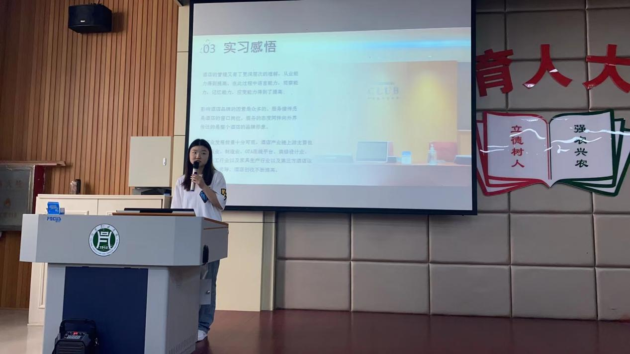 会议开始,首先由旅游管理学院副院长余兵宣读了优秀实习生名单。然后旅游管理学院党总支副书记杜丽、副院长陈婷及副院长余兵等学院领导为2020级本科优秀实习生颁发奖金和荣誉证书。随后2020级本科优秀实习生代表做了实习经验交流,她们以自己的亲身实习经历为例,介绍了实习中可能遇到的问题以及解决方法,并感谢学院的精心安排以及酒店领导对实习生的关怀。