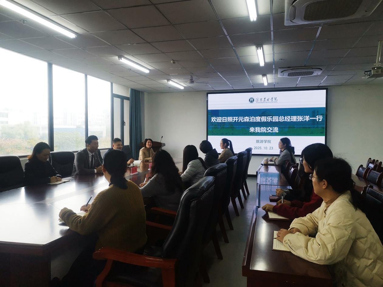 为积极响应国家“访企拓岗促就业”专项行动号召,精准对接企业需求,拓宽毕业生就业渠道,10月23日,旅游学院邀请日照开元森泊度假乐园总经理张洋一行到学院交流。旅游学院副院长陈婷、党委副书记池水婧及部分辅导员和教师参加此次座谈。