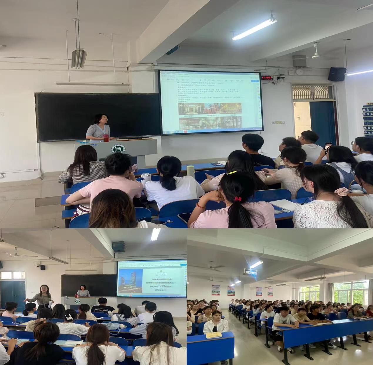 2024年5月23日—2024年5月25日,学院组织旅游管理学生128人、酒店管理专业学生127人,分别召开实习宣讲会,会上副院长陈婷和张欢欢分别将各实习单位的具体情况为学生进行一一介绍,并强调专业综合实习的各项基本要求。