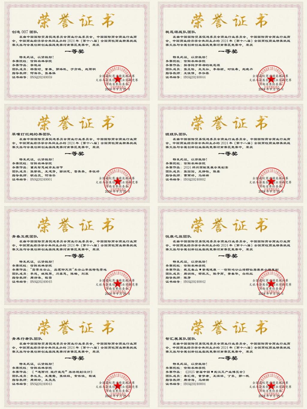 全国高校商业精英挑战赛文旅与会展创新创业实践竞赛由中国国际贸易促进委员会商业行业委员会、中国国际商会商业行业商会和中国商业经济学会联合主办的国家级赛事。大赛历时6个月,经过层层选拔,共有508支参赛队伍进入河南省省赛,最终有231支参赛队伍获奖。经过网络初评、线上展示、在线答辩等环节,我院共有22支队伍获奖,其中8支队伍获得河南省省赛一等奖,8支队伍获得省赛二等奖,6支队伍获得省赛三等奖。