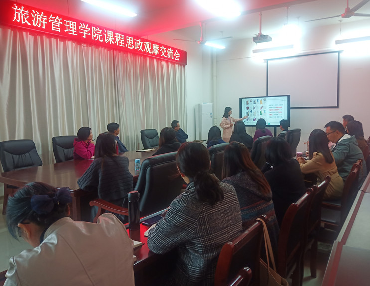 为深入贯彻习近平总书记关于加强高校思想政治教育的重要论述和全国教育大会精神,全面推进高校思想政治建设,把思想政治教育贯穿人才培养全过程,结合《beat365在线平台官网旅游管理学院课程思政五年行动计划》,旅游管理学院于2020年10月23日在科技楼1C502进行了课程思政观摩交流,由酒店管理教研室副主任李晓云老师主讲,旅游学院院长刘开华,副院长余兵、陈婷,近三年新进教师全体参与观摩、交流。