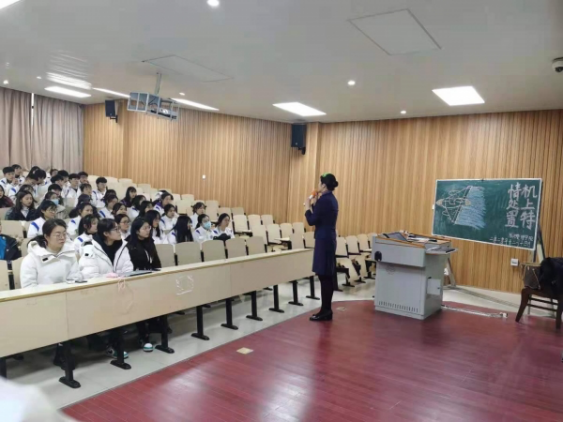 为了贯彻落实全国教育大会精神,加强实践育人的人才培养模式。2020年12月14日下午,旅游管理学院邀请中国国际航空公司乘务长姬茜茜做了主题为“机上特情处置”的学术报告,报告会由旅游管理专业教研室副主任付静宇主持,2020级旅游管理(空中乘务)专业全体学生及老师参加此次报告会。