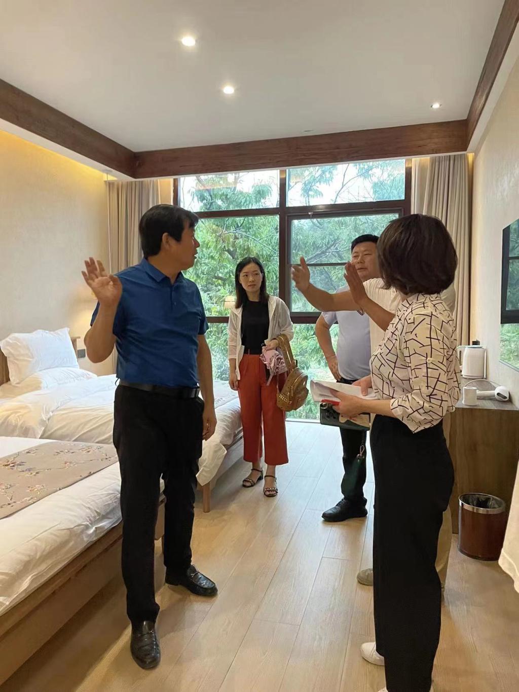 为规范和引导乡村民宿发展,提乡村民宿服务质量,受信阳市文化广电和旅游局委派,旅游管理学院陈婷、张利、孟俞彤、余瑛若等10余位老师于2022年6月23-24日到罗山县、浉河区和南湾湖风景区开展信阳市乡村民宿等级评定工作。