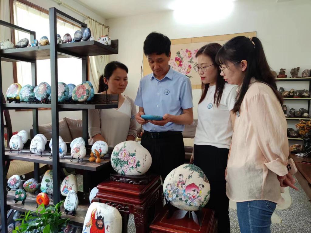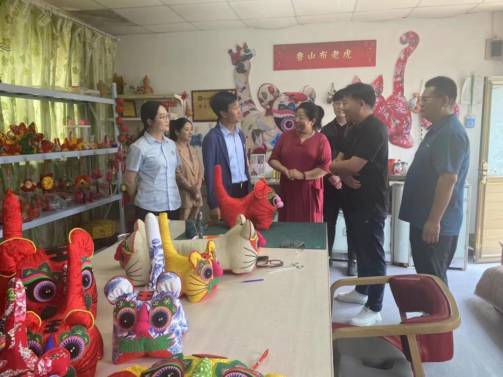 6月10日-12日,文创组赴鲁山花瓷艺术馆,双方就鲁山花瓷的特点进行讨论,同时结合市场需求,商讨伴手礼设计方案,探讨标志应用、IP元素、设计方案、工艺制作等问题,提出了文创设计思路和发展方向。根据县文广旅局提出的需求,文创组赴非物质文化遗产鲁山布老虎文化传人张秋月工作室,双方针对前期布老虎各个尺寸的帆布包装设计通用性、尺寸、方案细节开展了交流与沟通,进一步确定了布老虎莲花眼、葫芦鼻、蝙蝠铜钱嘴等独特的IP形象,寓意吉祥,商榷插画设计细节,为下一步塑造布老虎的生动形象奠定基础。结合非遗需求,文创组实地探访了鲁山石头画非遗传承人工作室,双方就石头画的包装、设计、销售等方面进行了深入交流。服务小组参观了石头画制作的工艺流程,与传承人共同探讨了非物质文化遗产的传承与创新,为石头画的发展与传播提供了专业意见与发展规划。