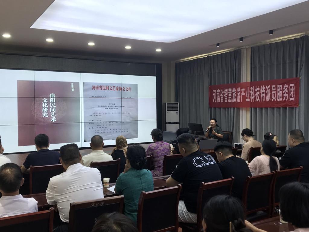 7月12日,河南省智慧旅游产业科技特派员服务团在鲁山县举办“非物质文化遗产”保护传承培训班,本培训班旨在增强代表性非遗传承人的传承意识、业务素质、创新能力,进一步提升鲁山县非物质文化遗产的系统性保护水平。鲁山县文化艺术中心相关工作人员及非遗项目代表性传承人共计50余人参加培训。