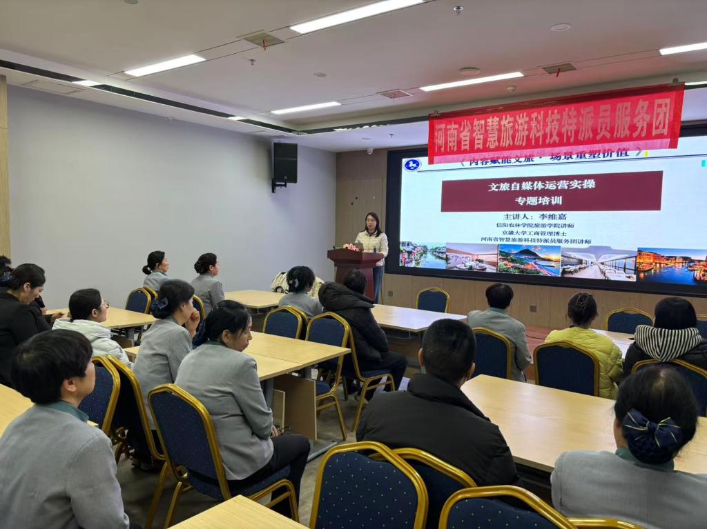 3月14日下午,服务团再度走进鲁山永立艾维斯酒店,针对此前调研排查出的问题,开展专题培训与现场指导工作。代沐冉老师以“酒店服务运营”为主题,从酒店服务规范、运营流程、仪容仪表等多个维度切入,采用理论讲解与实操示范双轨并行的方式,为酒店员工带来了一场系统性培训,切实提升了从业人员的服务标准化水平;李维嘉老师则将目光聚焦于“文旅自媒体运营实操”,围绕内容创作技巧、流量引流策略、粉丝精细化运营等核心要点,结合文旅行业典型案例拆解实用方法,助力酒店打通线上宣传推广的全新路径。