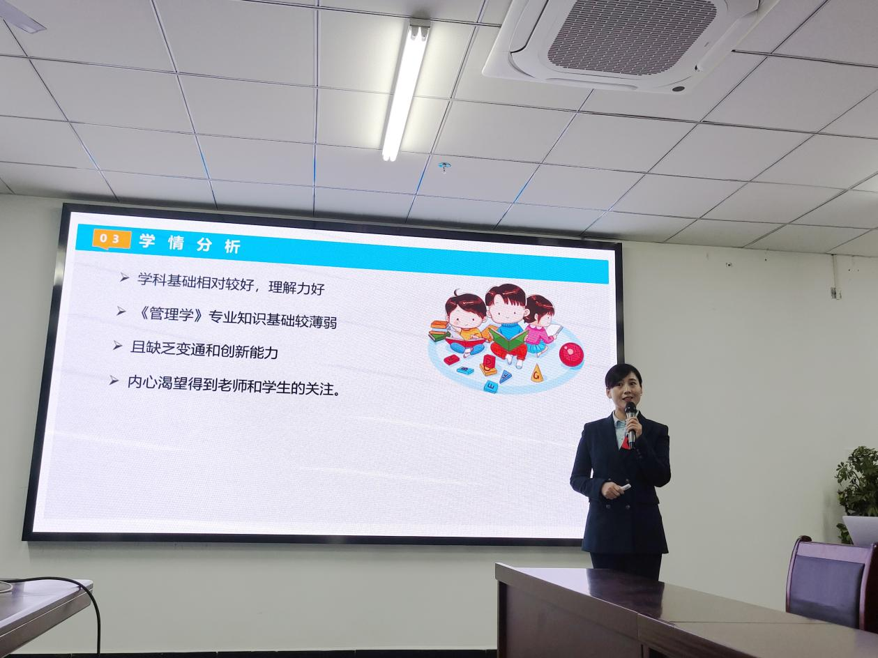 大赛分说课与授课两个环节,参赛教师利用3分钟时间进行说课,阐述课程在人才培养方案中的地位,并说明教学理念、教学内容、教学手段、教学设计和教学过程。15分钟的讲课环节充分展示了教师的教学风采和临场应变能力。参赛教师们精心的教学设计、精炼的教学语言、精致的教学板书、精彩的教学艺术,彰显出青年教师的聪明智慧,给现场师生带来了一场精彩纷呈的教学技能盛宴。最终经过评委专家的严格评审,来自旅游管理教研室的王芳老师凭借出色表现荣获第一,将代表学院参加学校的比赛。