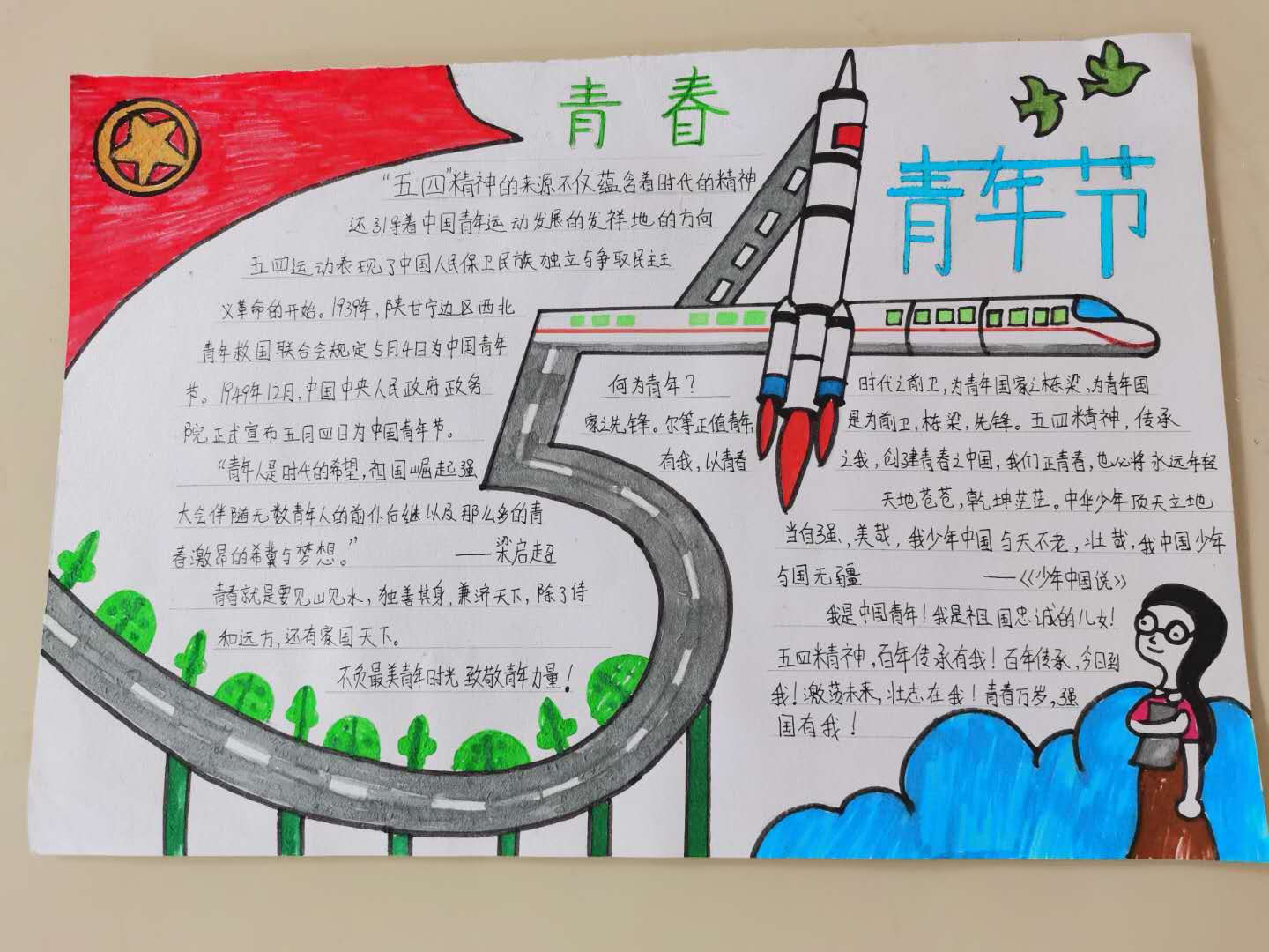 本次活动,各班同学踊跃投稿,同学们纷纷通过书法、绘画、手抄报和海报等多种形式表达自己对“五四”精神的理解以及争做“五四”好青年的决心。看,每份作品都在传播积极向上的青春正能量,体现了青年担当,彰显了青春风采。