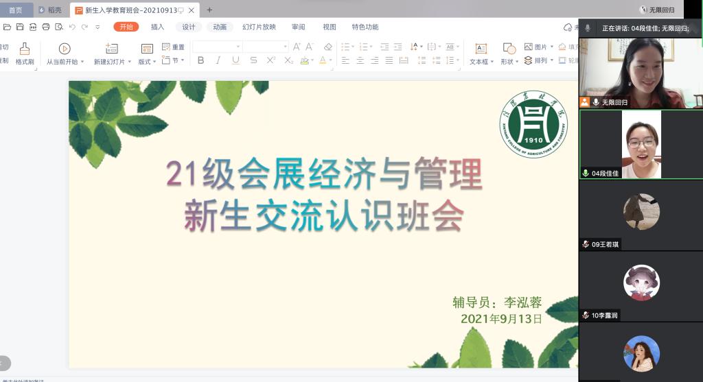 根据学校相关通知安排,旅游管理学院于9月13日召开了2021级新生线上入班教育主题班会。班会由各班辅导员主持。