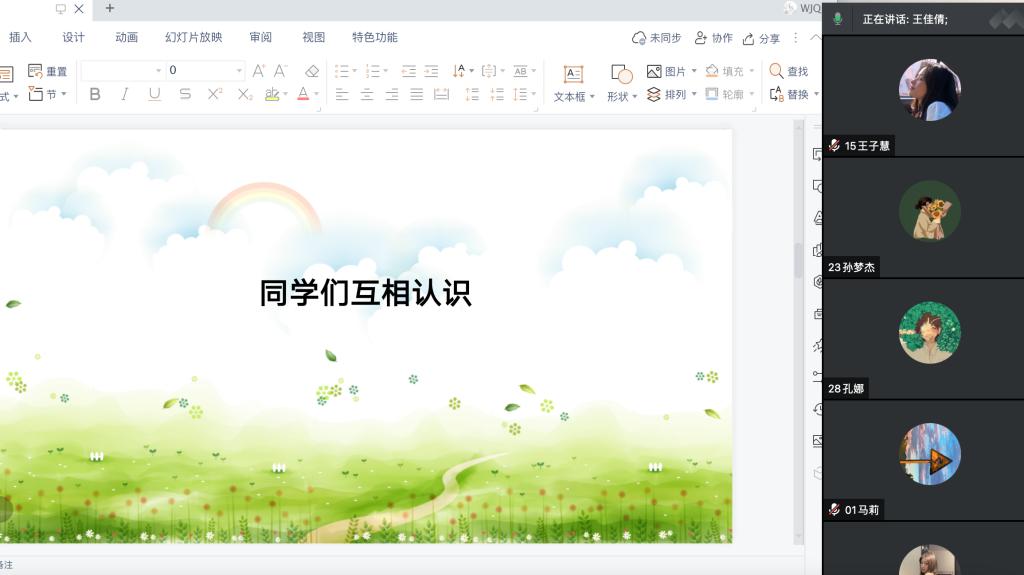 “云端相聚情谊浓”。同学们虽然暂时还不能线下见面,特殊的线上见面方式让同学们感到很新颖。面对新的学期,新的气象,新的起点,新的朋友,同学们分别向大家介绍了自己的家乡、兴趣爱好、对大学四年生活的展望和对大家的祝福。他们各抒己见,全面深度地让大家了解自己,相谈甚欢,情投意合,距离能阻断大家相见,但却阻止不了大家一见如故、眉目成书的缘念。