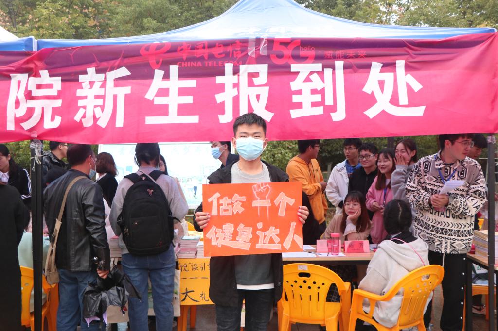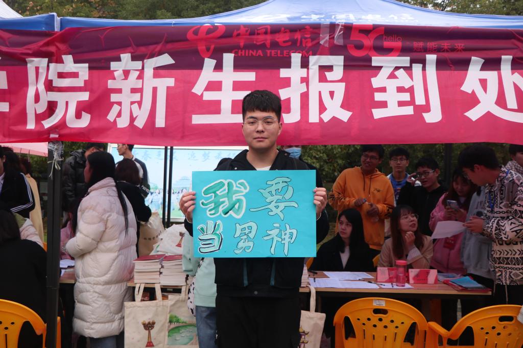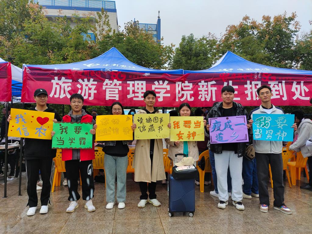 硕果十月,我们相聚在这里,青春在这里起航,梦想在这里飞翔。10月8日,旅游管理学院在迎新中开展了“我与我的‘Flag’合个影”活动。新生在迎新现场纷纷拿起写有“我要当学霸”“我要当男神”“我要当女神”“瘦成一道闪电”“做运动达人”“读遍图书馆藏书”……等文字内容的卡片合影,立下了自己进入大学后的首个“Flag”,以确定自己在大学期间要努力的方向和要实现的小目标。
