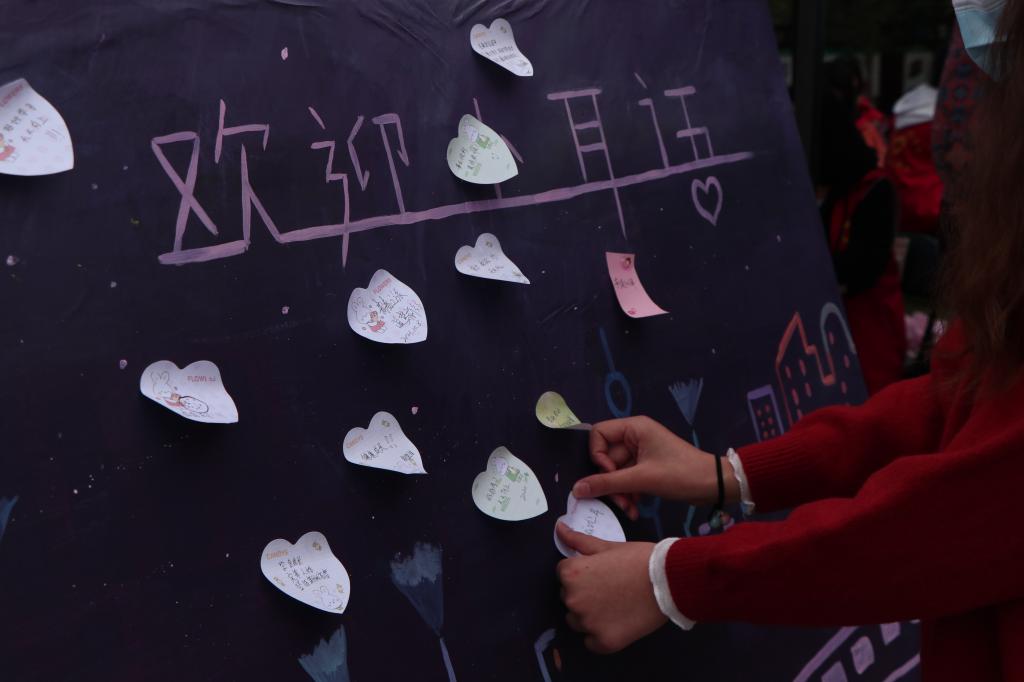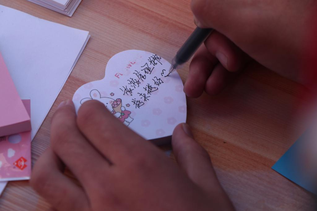 为引导21级新生对未来的大学生活有所规划,我院在迎新现场设立了“新生寄语——欢迎小耳语”活动点,小耳语们纷纷在留言板上留下自己对大学生活的期待与展望。在留言板上随处可见同学们青春激昂的文字,“不负韶华,好好学习”“博览群书,丰富学识”“自尊自爱,自律自信”等等,这些文字展示了新生们积极向上的精神风貌和蓄势待发的青春梦想。