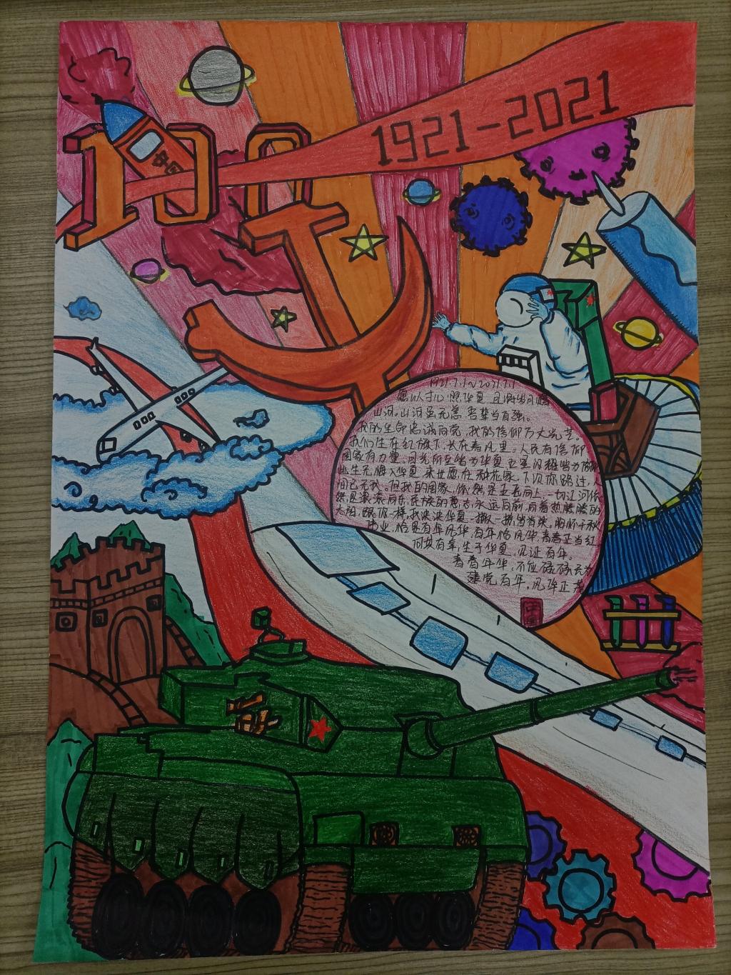 本次大赛全院各个班级踊跃参与,共征集到书画作品20余副,参赛作品内容丰富,积极健康,其中既有歌颂党和家国情怀的名言名句,又有反映社会主义建设新变化、新面貌的画作联赋,书画的艺术魅力与同学们对党和国家强烈的热爱相结合, 既展现了同学们较强的书法美术创作实力,又充分表达了同学们对党和国家的赞美与感恩。
