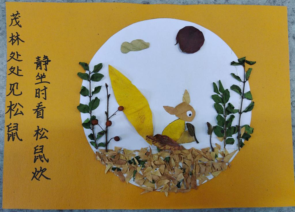 活动中,同学们充分开动头脑,让智慧与审美碰撞,让创意与灵感迸发,他们利用在校园里捡来的树叶、树枝、干枯的花朵或掉落的果实,通过剪刻﹑拼接﹑粘贴﹑点染等方式,创作出一幅幅奇思妙想的精美作品,用自己的双手和智慧留住了落叶生命轨迹中最后的绚烂。