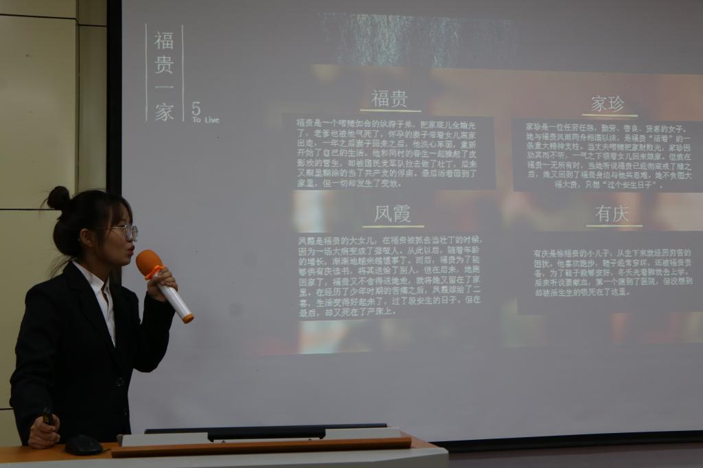 活动伊始,师生共同观看了《我们为什么要读书》的视频,让大家知道山河时代,读书是为了求索救国良方:百废待兴,读书是为了改天换地,矢志报国;变革岁月,读书是为了和国家一道奋起直追;当今时代,我们读书更是为了勇担众任,不负时代。王芳老师为大家宣读了本月获得“阅读之星”名单。本月“阅读之星”代表王丁、秦华夏、王冰珂三位同学以PPT的形式为大家分享了《平凡的世界》《活着》《牧羊少年奇幻之旅》等书籍及读书心得,在她们的讲解之中,在场师生领略了书之美,感受到了书之魂,与分享者一起沉浸在书的海洋里,汲取知识的营养。