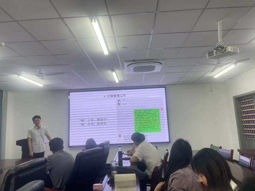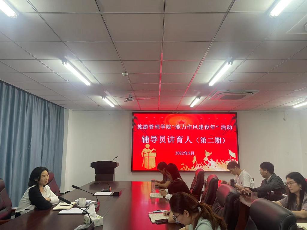 5月27日下午,旅游管理学院在双创楼310会议室开展了“能力作风建设年”之“五月辅导员工作交流会暨辅导员讲育人(二)”活动。学院全体专兼职辅导员参加了活动。活动由院党总支副书记杜丽主持。