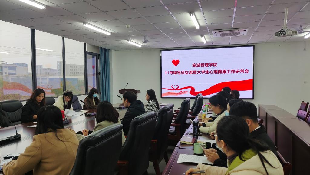 为进一步提升辅导员心理健康教育意识与能力,推动大学生心理健康教育工作的顺利开展,旅游管理学院于11月18日在双创中心301召开11月辅导员交流暨大学生心理健康工作交流会。会议由党总支副书记杜丽主持,校心理健康教育中心杜娟老师受邀参加会议。