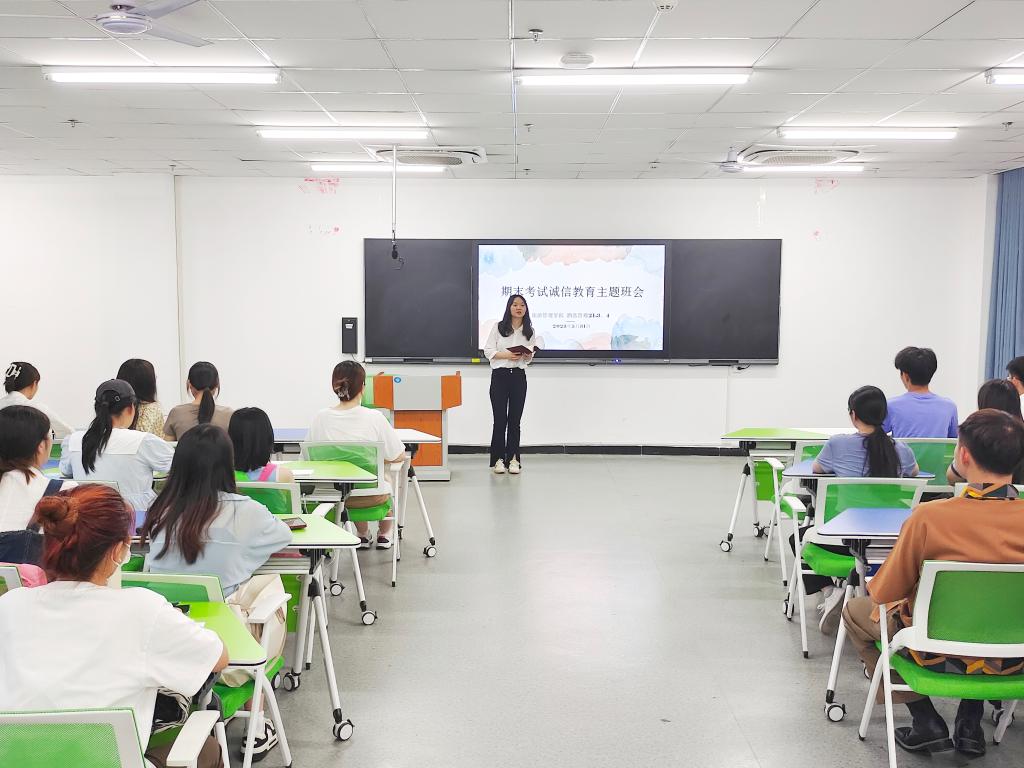为培育和践行社会主义核心价值观,大力弘扬诚信文化,切实提升学生的诚信品质、自律意识和社会责任感,旅游管理学院于2023年5月23-27日开展了“诚信教育”主题班会。班会由各班辅导员主持。