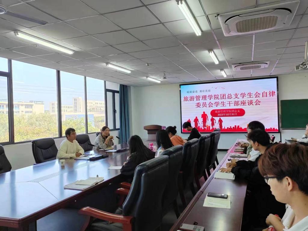 为充分了解学情、倾听学生心声,提升学生管理工作水平,10月31日,旅游学院在双创中心310会议室召开了学生干部座谈会,我院党总支副书记杜丽、专职辅导员张博及部分学生干部参加了此次座谈会,座谈会由杜丽主持。