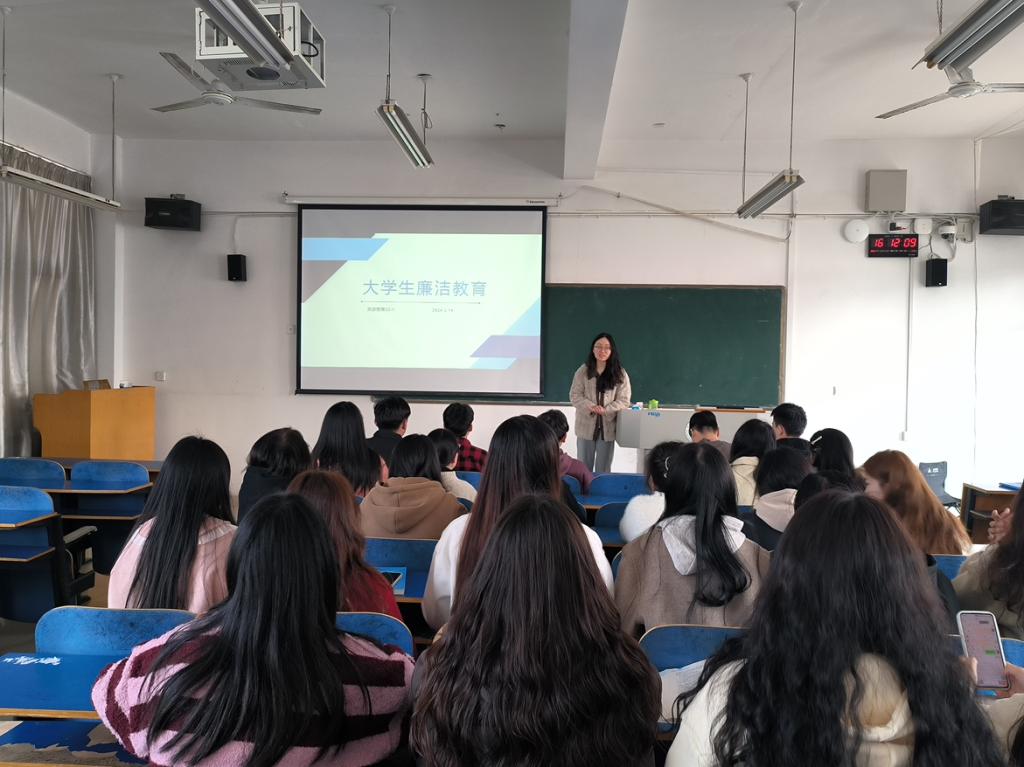 在辅导员带领下,学院各班级团支部开展了廉洁自律主题班会。辅导员老师们以史为鉴,指出了腐败的危害及反腐的坚决性,告诫大家在日常生活中要做好自我约束、自我管理、自我教育、自我提高;在未来的职业生涯中也要时刻守住道德与法律的底线,让廉政之树在心中扎根成长,坚定理想信念,抵御诱惑防腐拒变;希望各位同学建立了“慎微”“慎欲”“慎行”的行动准则,按规章制度办事,树立遵纪守法的根本原则。班会上,同学们也对身边不廉洁自律的行为进行了讨论。