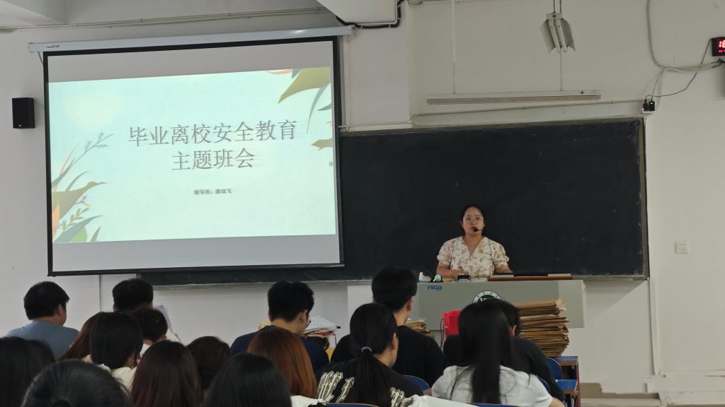 班会中,辅导员首先强调了毕业生离校期间的注意事项,要求毕业生在离校前要严格遵守学校的规章制度,注意宿舍用电用水安全,严禁在宿舍内聚会饮酒。离校前要做好详细的离校计划,包括行程安排、交通方式等。同时,要做好财物清点,确保个人物品的安全。在外出行时,要注意交通安全,避免发生意外。另外,强调在校外严格遵守法律法规,提高警惕,注意识别各种诈骗、传销活动,确保人身安全。最后,辅导员提醒毕业生同学:面对新的环境和挑战,可能会出现各种心理压力,要注意积极调整心态,迎接新的挑战。