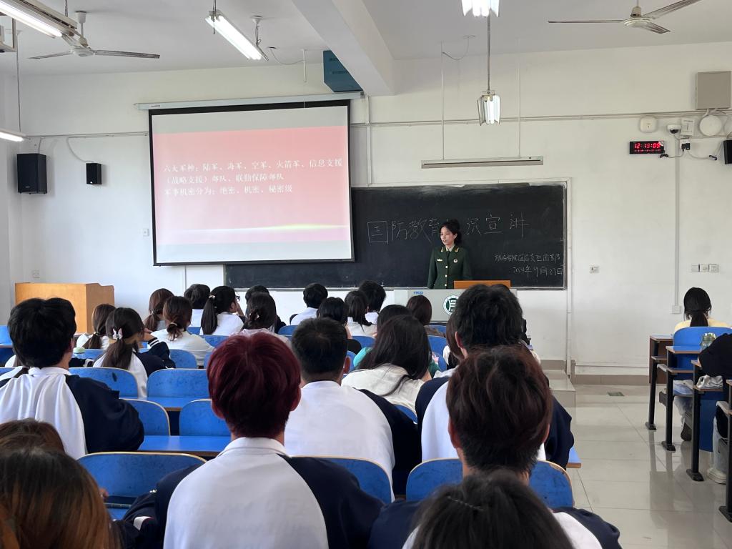 本次国防教育宣讲活动,不仅普及了国防知识,还进一步加深了学生的国防意识和爱国情怀,激发了他们的责任感与使命感。今后,我院将继续开展形式多样的国防教育活动,不断厚植爱国情怀,为培养新时代的国防后备力量奠定了坚实基础。(撰稿:易冉  摄影:王乐怡)