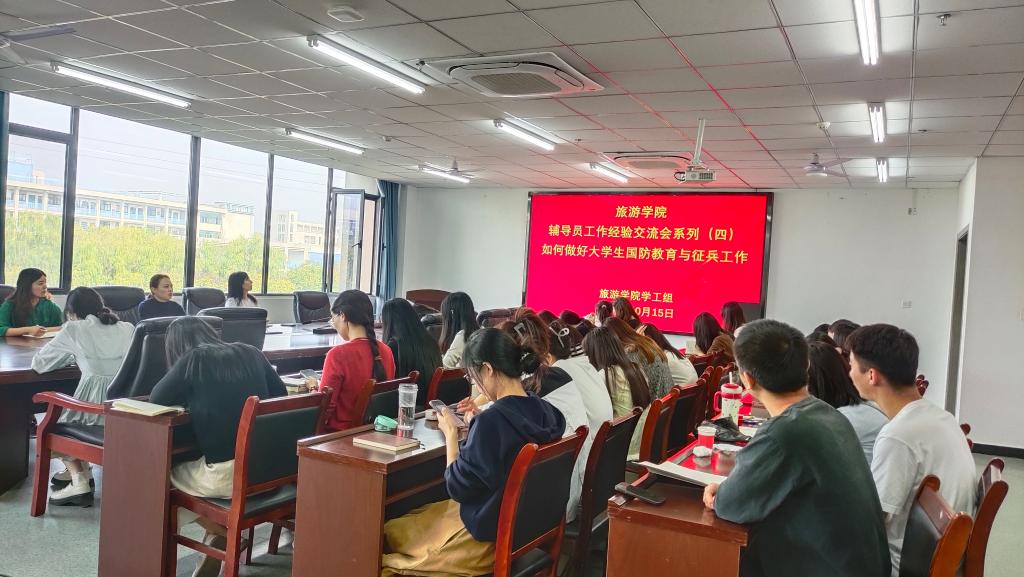 为进一步加强大学生国防教育,扎实推进征兵工作,旅游学院于10月15日成功举办了“如何做好大学生国防教育与征兵工作”辅导员工作经验交流会。此次交流会旨在分享经验、交流心得,共同探讨如何更好地开展大学生国防教育与征兵工作。会议由院党总支副书记池水婧主持,全体专兼职辅导员参加。