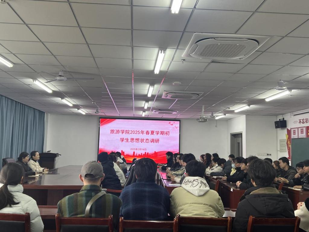 为深入了解新学期学生思想动态、心理状况以及合理诉求,确保思想政治教育取得实效,营造团结奋进的育人环境,2月18日中午,旅游学院在双创中心310召开学期初学生思想状态调研会,学院党委副书记池水婧、团总支副书记徐俊杰及50余名学生代表参加了本次会议,会议由徐俊杰主持。