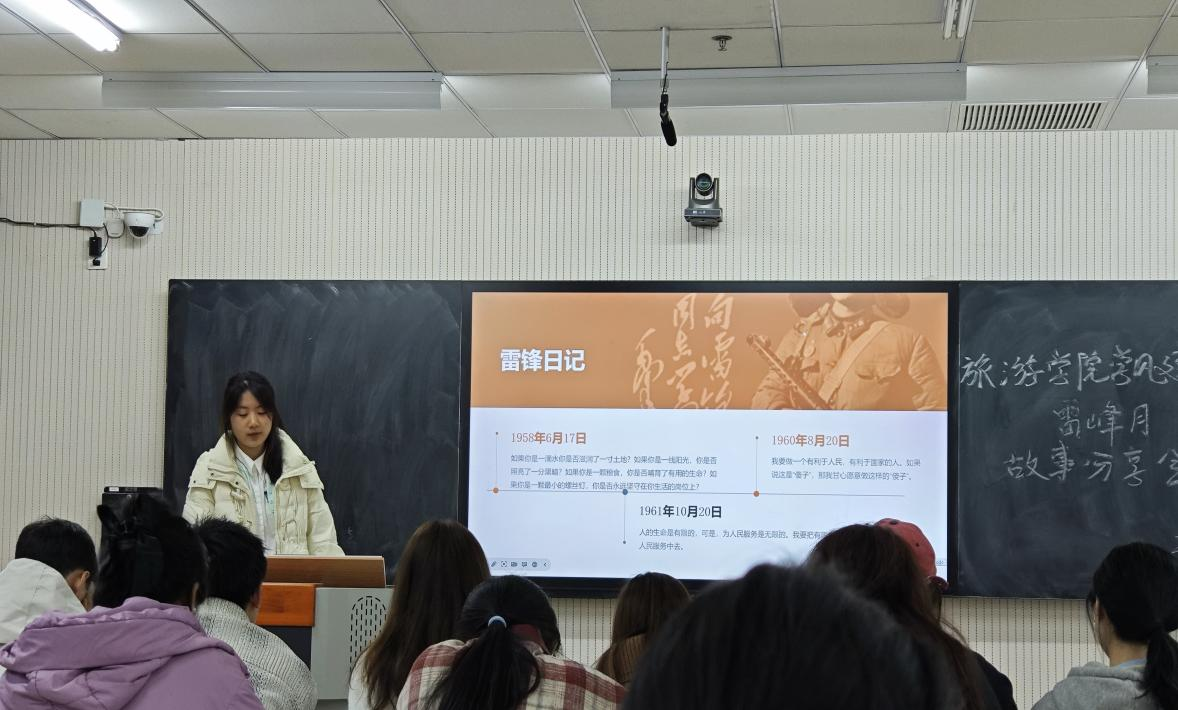 为弘扬雷锋精神,将榜样的力量融入校园生活,3月25日晚19:00,旅游学院在三教217教室举办了“雷锋精神在身边”主题故事分享会。