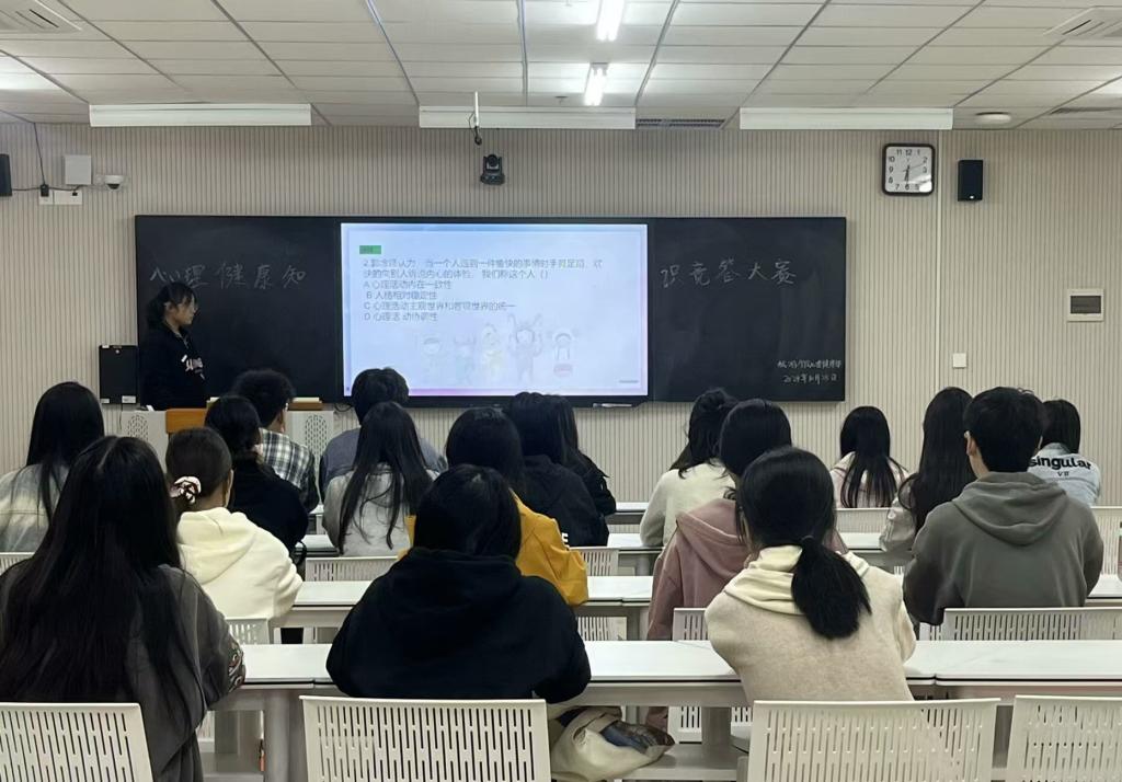 此次心理知识竞答赛采用抢答方式进行。题目密切结合大学生在校园生活中可能遇到的心理问题和困扰,涵盖了常见的心理知识、心理危机干预、心理健康的调节方法以及自我调控等内容,比赛过程中,既有紧张刺激的抢答环节,也有富有挑战性的案例分析环节,充分考验了选手们的心理素质和综合能力,选手们凭借扎实的心理知识储备和出色的应变能力,展现出了自己的风采。