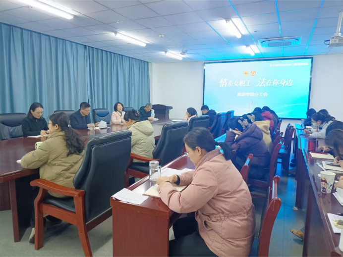 为深入学习宣传贯彻习近平法治思想,全面落实男女平等基本国策,切实维护高校女教师合法权益与特殊利益,按照信阳市总工会和校工会统一部署,我院于3月17日下午在310会议室精心组织开展2026年“情系女职工 法在你身边”普法宣传系列活动,以法治护航“她力量”,以关爱守护“半边天”。