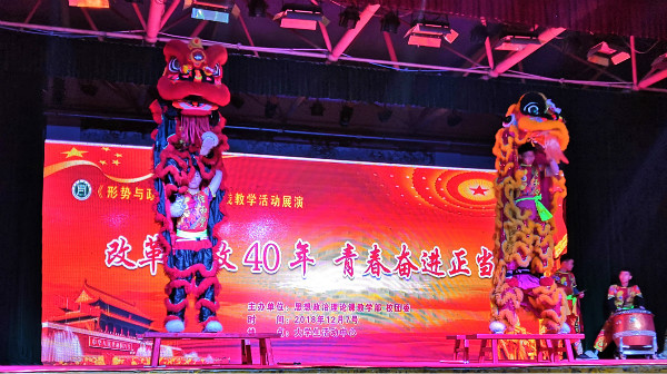 习近平总书记指出:“改革开放是党在新的历史条件下领导人民进行的新的伟大革命,是决定当代中国命运的关键抉择。”为深入学习宣传贯彻改革开放精神,12月7日晚由思政部与校团委联合举办“改革开放40周年,青春奋进正当时”《形势与政策》课程实践教学展演活动,在大学生活动中心成功举办。党委副书记扶庆、校团委书记王鹏、思政部主任邱兴平以及校团委、思政部全体教师出席了本次活动。