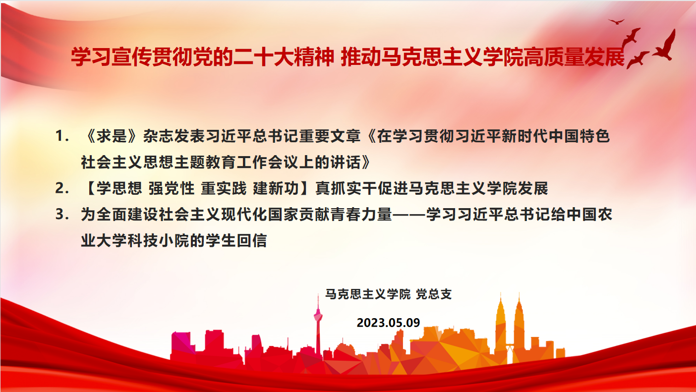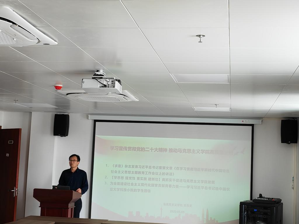 2023年5月9日下午,马克思主义学院召开“学习宣传贯彻党的二十大精神,推动马克思主义学院高质量发展”工作会。全体教师参加,会议由中国近现代纲要教研室主办,教研室主任张坤主持。