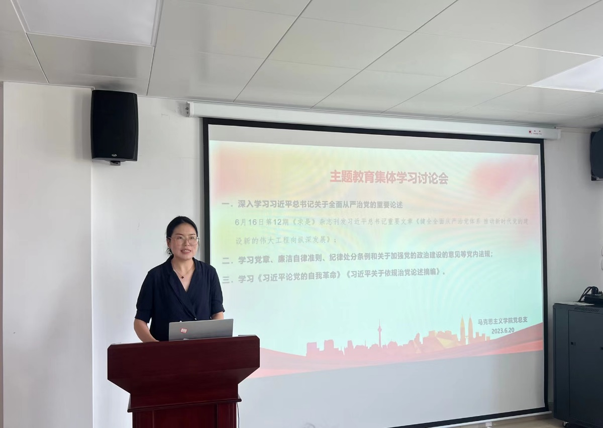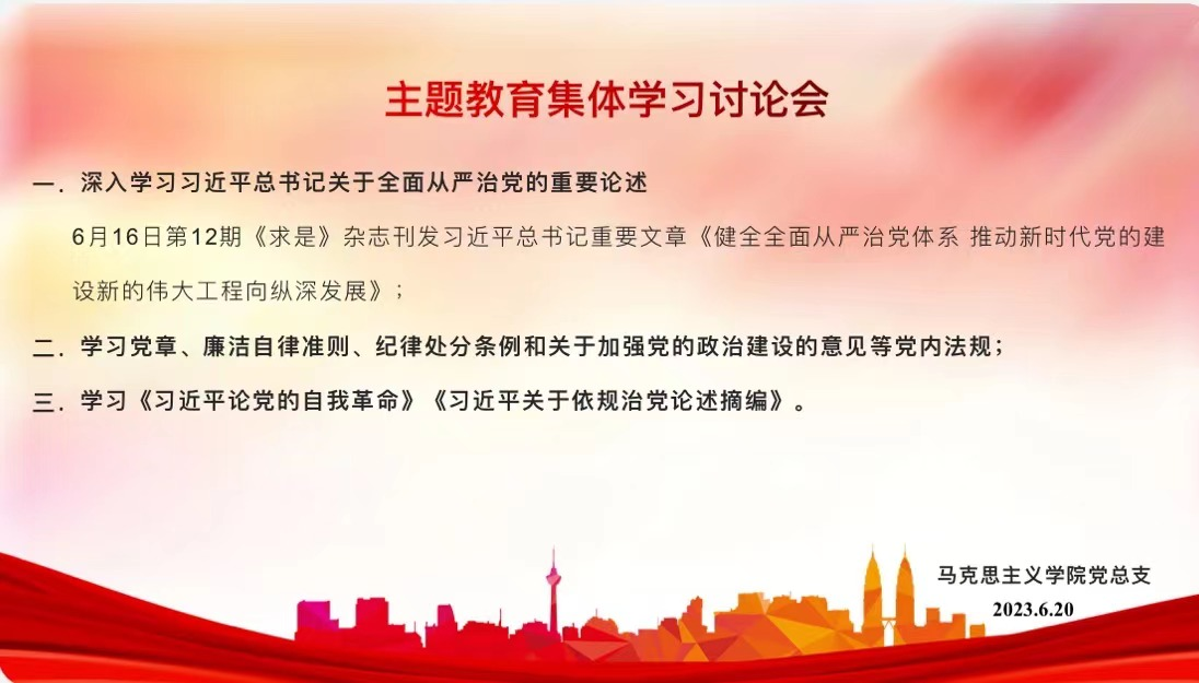 6月20日下午,马克思主义学院在学术交流中心509会议室举行主题教育集体学习研讨会,全体教师参加。