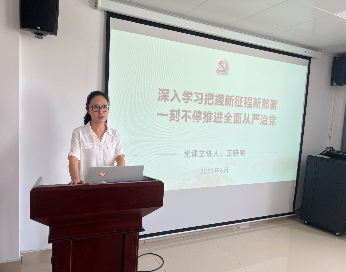 首先,党总支副书记王晓明以“深入学习把握新征程新部署,一刻不停推进全面从严治党”为题,从新要求、新思路、新观点、新举措四个方面系统阐释了党的二十大报告中关于深化全面从严治党的新战略部署,为全体教师上了一堂生动的党课。