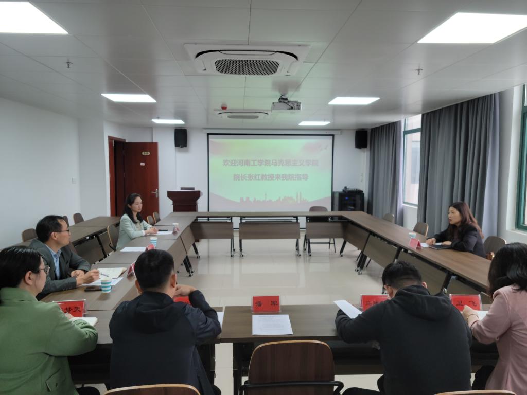2023年10月19日下午,河南工学院马克思主义学院院长张红教授来我院作本科教学合格评估工作交流。校党委委员、党委宣传部部长、学校马克思主义学院建设领导小组办公室副主任简频捷、学院党总支副书记、副院长王晓明、副院长周俊以及学院教师代表参加交流会。