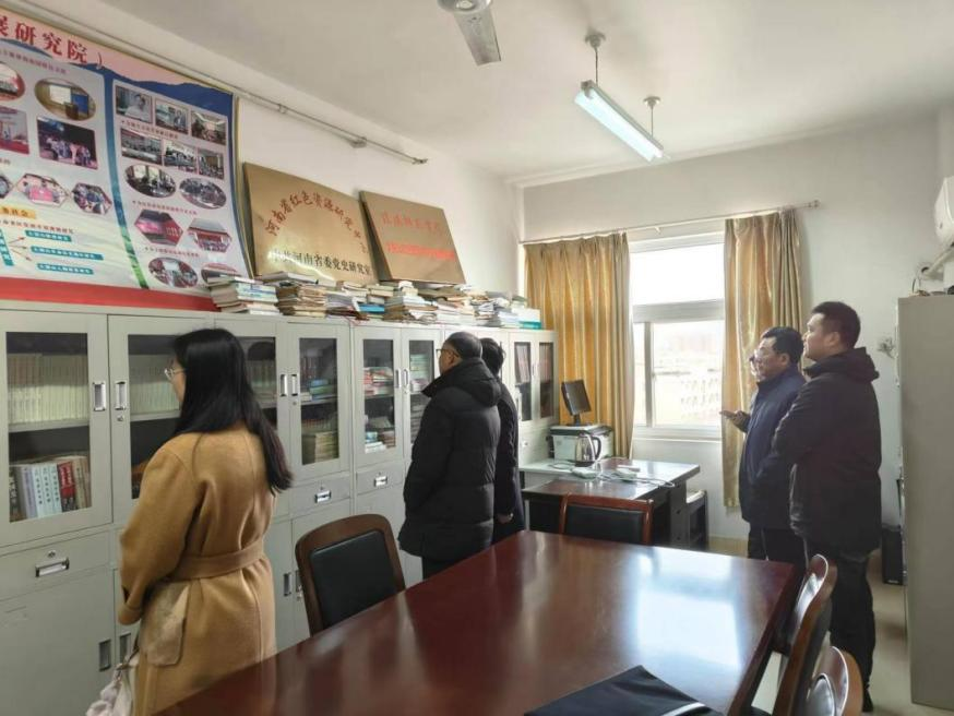 敖翔一行首先在大别山精神研究院秘书孙启正博士的陪同下,参观了研究院图书资料室。