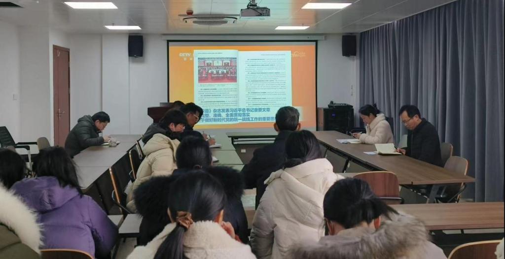 会议中,教师们共同学习了《求是》杂志上发布的习近平总书记重要文章《完整、准确、全面贯彻落实关于做好新时代党的统一战线工作的重要思想》。